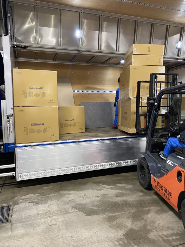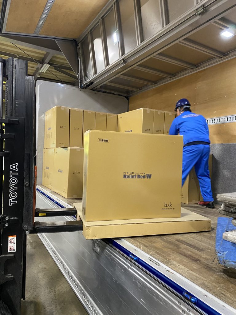 2024.01.16 コーポレート 日本財団の要請により災害支援物資を提供いたしました 1月16日、日本財団より要請を受け、段ボールベッド100台、段ボール間仕切りパーテーション100台を穴水町立穴水中学校へお届けいたしました。